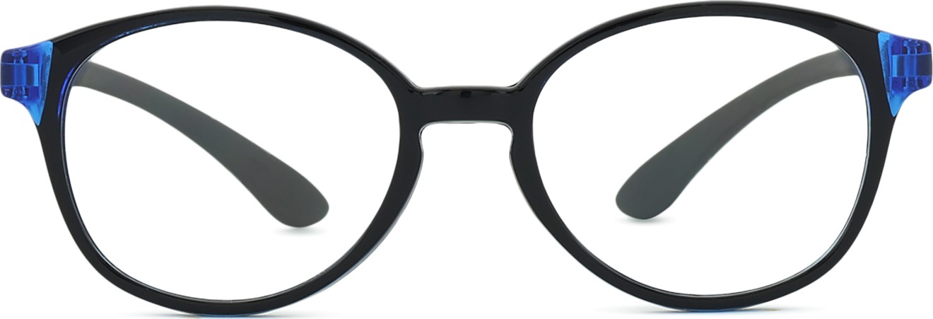 A cor azul da armação combina perfeitamente com um tom de pele claro e um cabelo castanho claro, preto ou loiro claro.