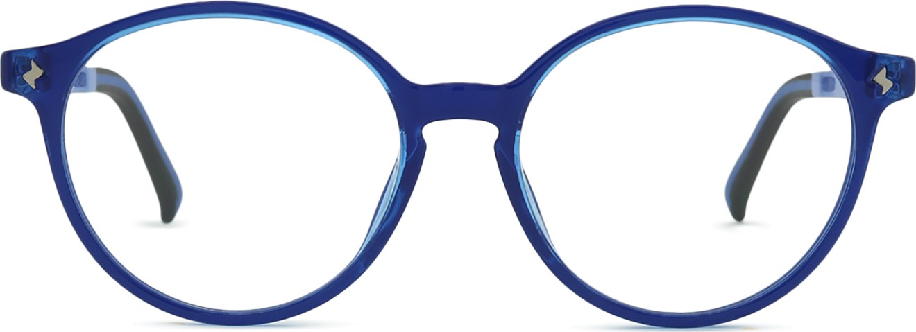 A cor azul da armação combina perfeitamente com um tom de pele claro e um cabelo castanho claro, preto ou loiro claro.