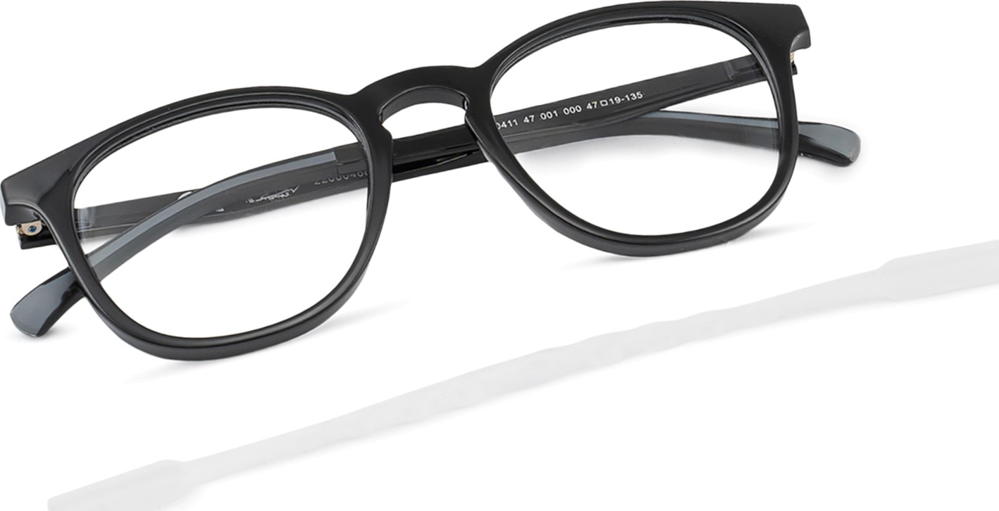 - A cor preta da armação combina perfeitamente com um tom de pele claro e um cabelo loiro claro, castanho claro ou preto.
