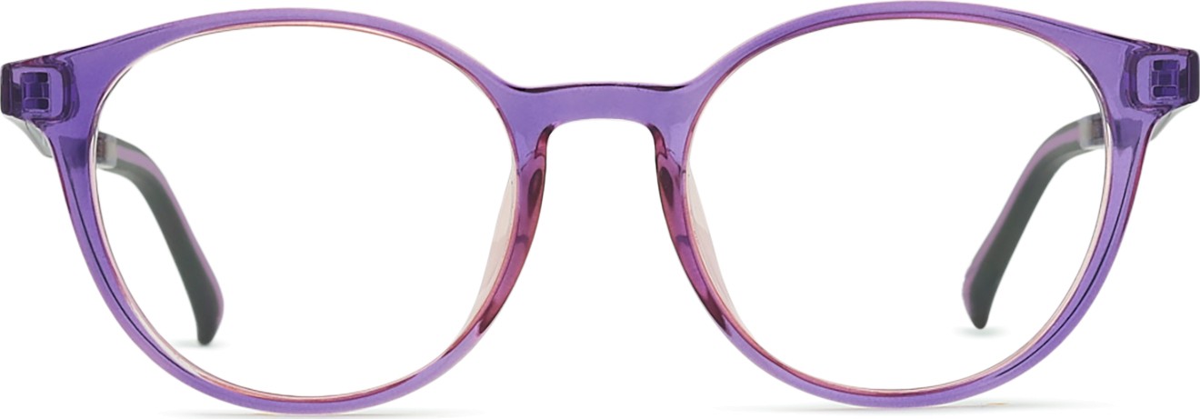 A cor púrpura da armação combina perfeitamente com um tom de pele claro e um cabelo preto, cinzento, branco ou loiro claro.