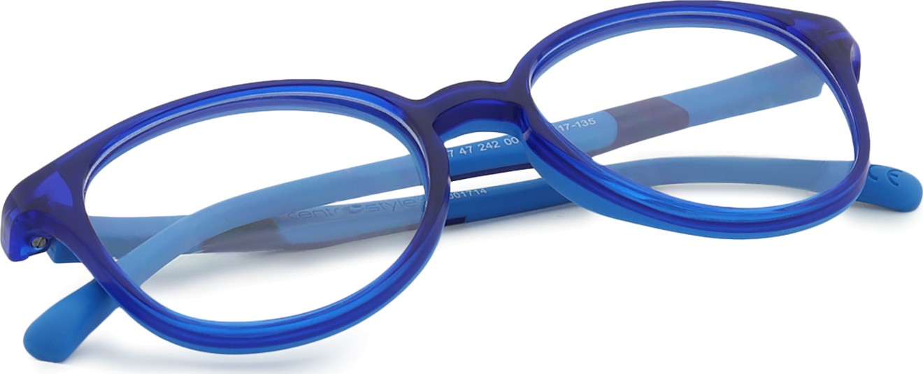 - A cor azul da armação combina perfeitamente com um tom de pele claro e um cabelo castanho claro, preto ou loiro claro.