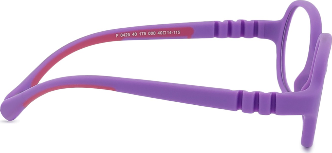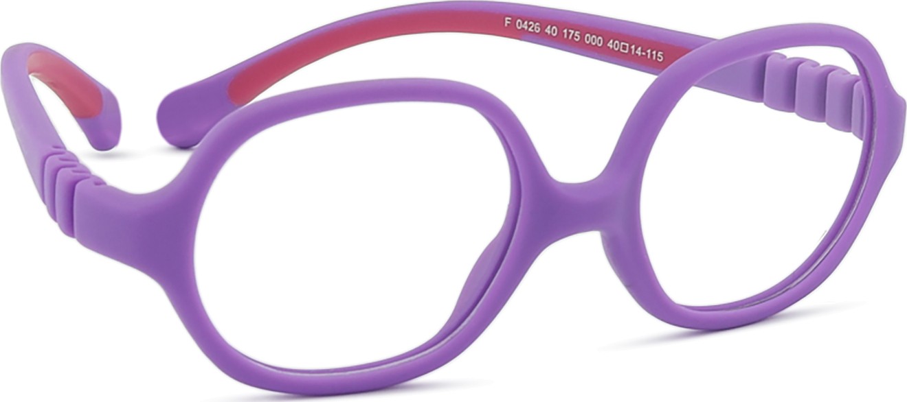 - A cor púrpura da armação combina perfeitamente com um tom de pele claro e um cabelo preto, cinzento, branco ou loiro claro.