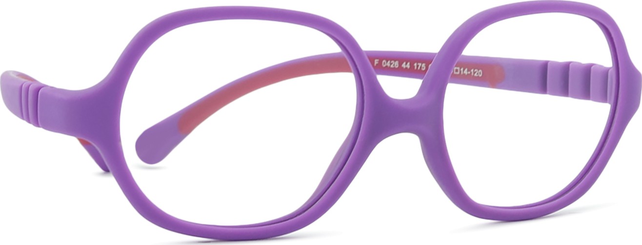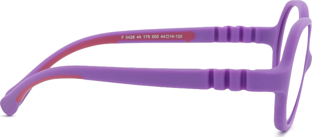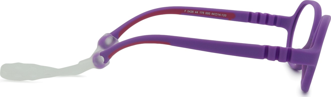 - A cor púrpura da armação combina perfeitamente com um tom de pele claro e um cabelo preto, cinzento, branco ou loiro claro.
