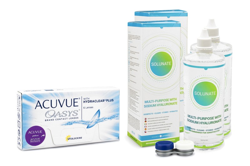 Acuvue Oasys (6 lentes) + 2 x Solunate Multi-Purpose 400 ml com estojo