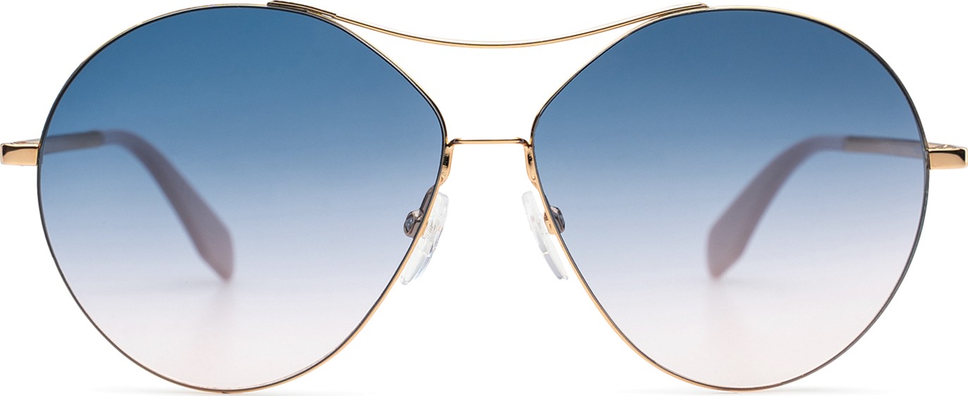 - A cor dourada da armação combina perfeitamente com um tom de pele quente e um cabelo castanho escuro.
