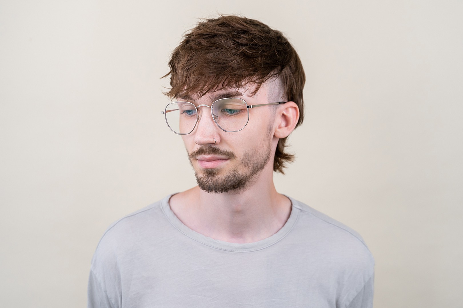 - A cor prateada da armação combina perfeitamente com um tom de pele claro e um cabelo vermelho, cinzento, branco ou loiro escuro.