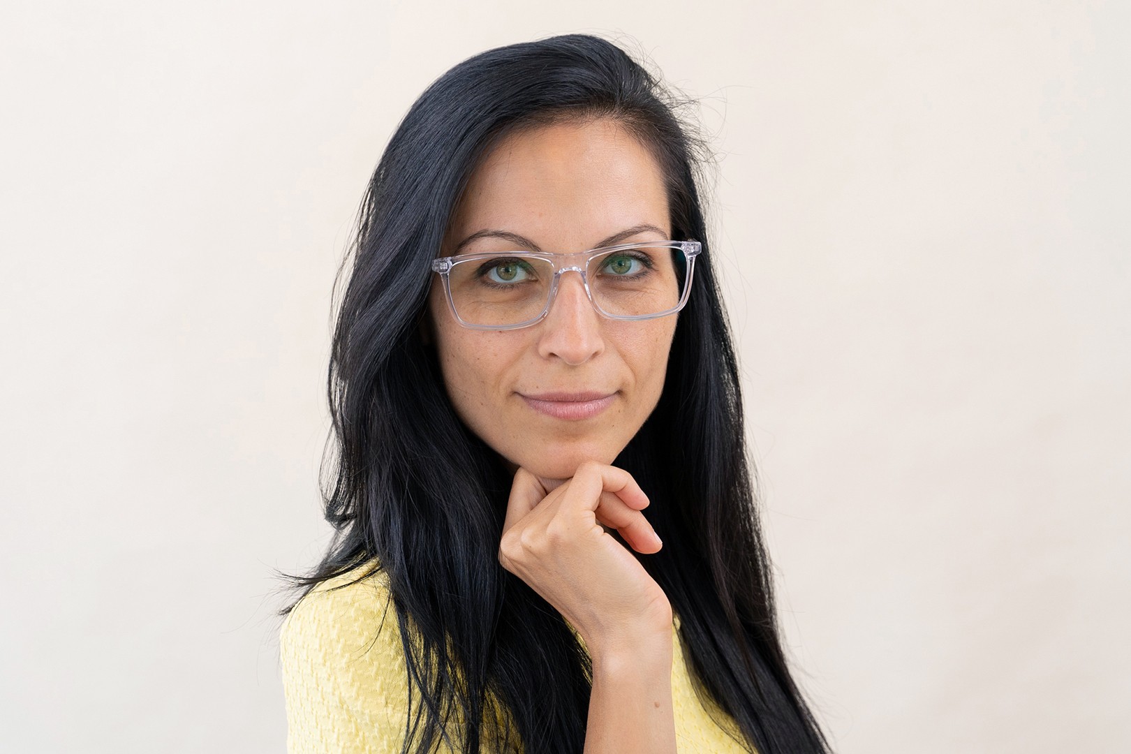 - A armação transparente combina perfeitamente com os tons de pele claros e escuros e com todas as cores de cabelo.
