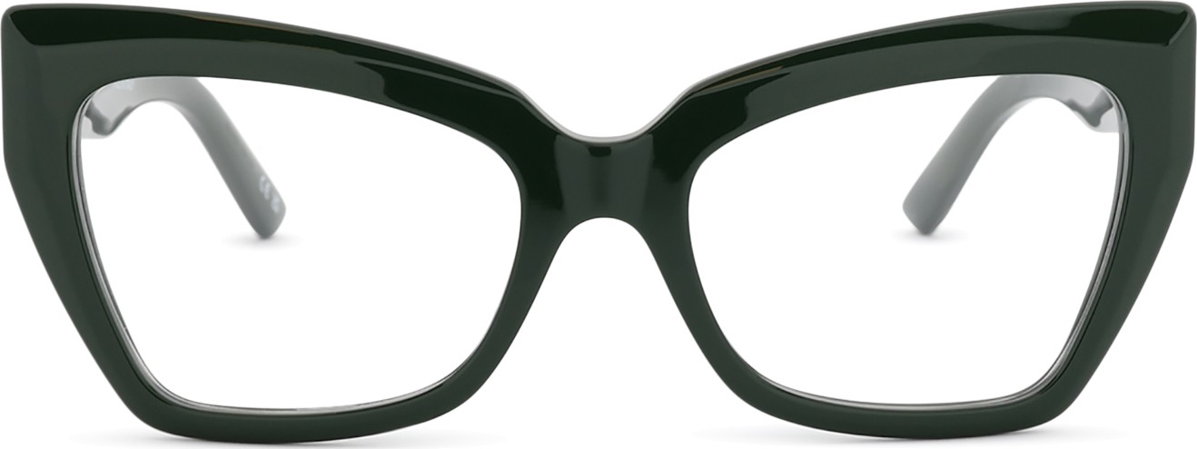 - A cor verde da armação combina perfeitamente com um tom de pele claro e um cabelo castanho escuro, preto ou ruivo.