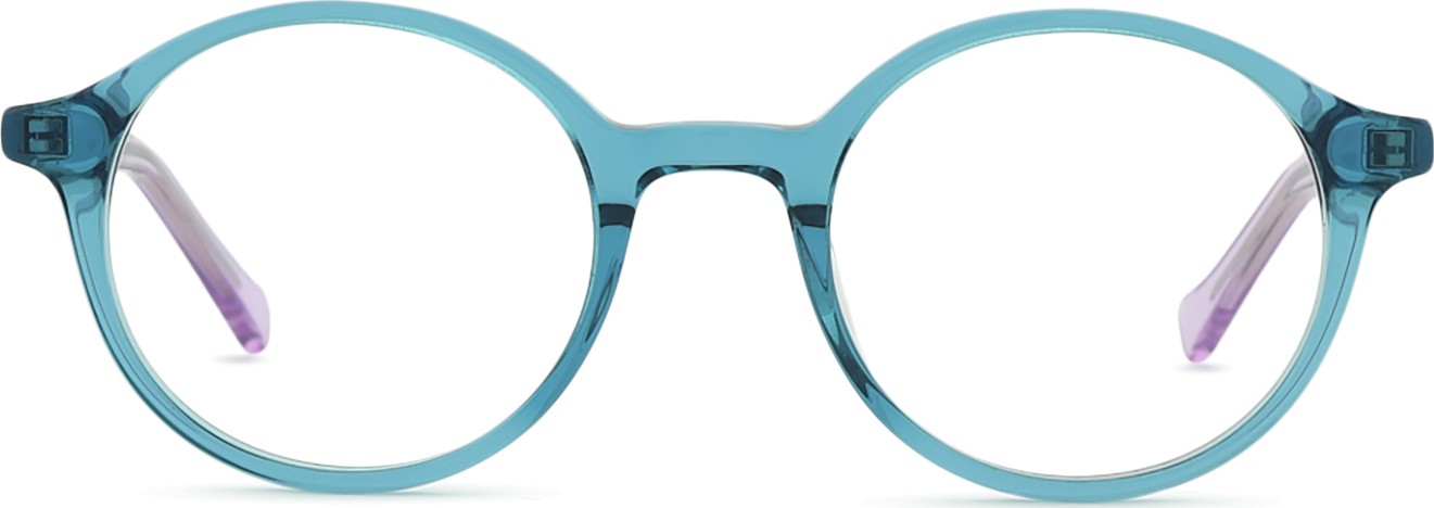 A cor azul da armação combina perfeitamente com um tom de pele claro e um cabelo castanho claro, preto ou loiro claro.