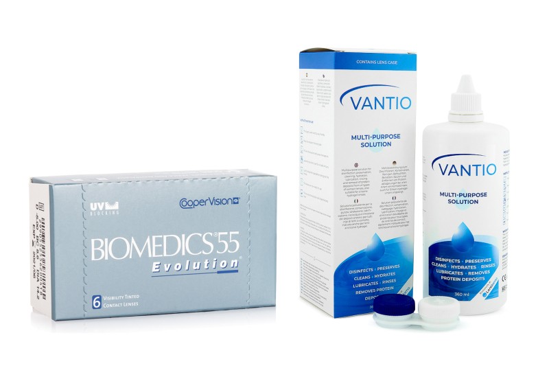 Biomedics 55 Evolution CooperVision (6 lentes) + Vantio Multi-Purpose 360 ml com estojo