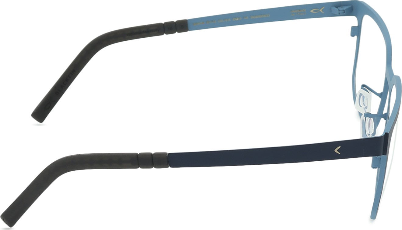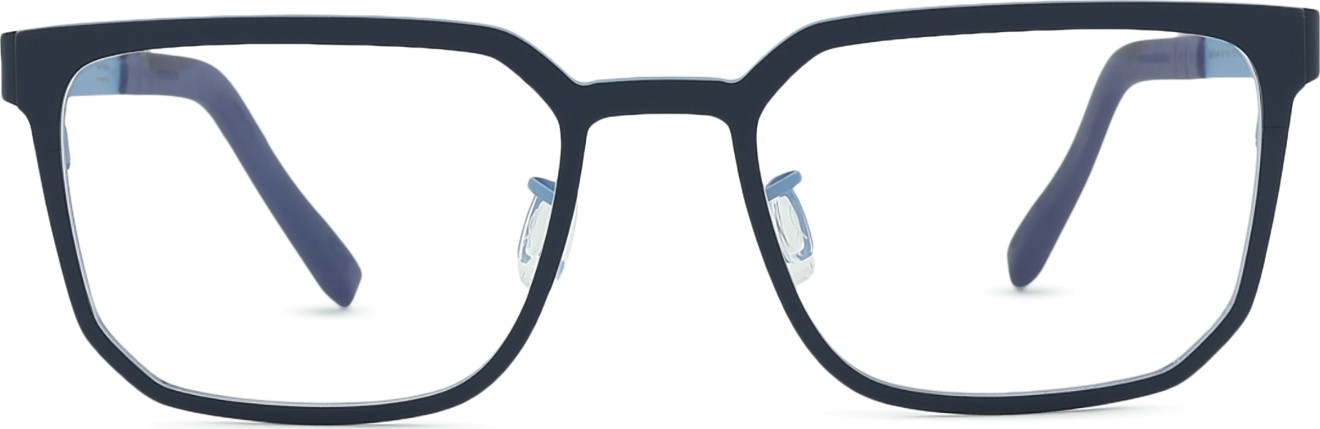 A cor azul da armação combina perfeitamente com um tom de pele claro e um cabelo castanho claro, preto ou loiro claro.
