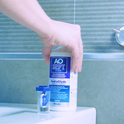 Uma vez finalizado o processo de neutralização, descarte a solução de peróxido usada e deixe o estojo aberto para secar. Agora é seguro colocar as lentes de contacto.