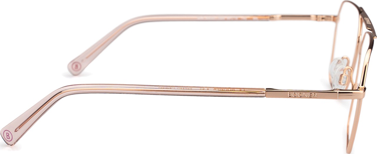 - A cor rosa da armação combina perfeitamente com um tom de pele claro e um cabelo castanho ou loiro claro.