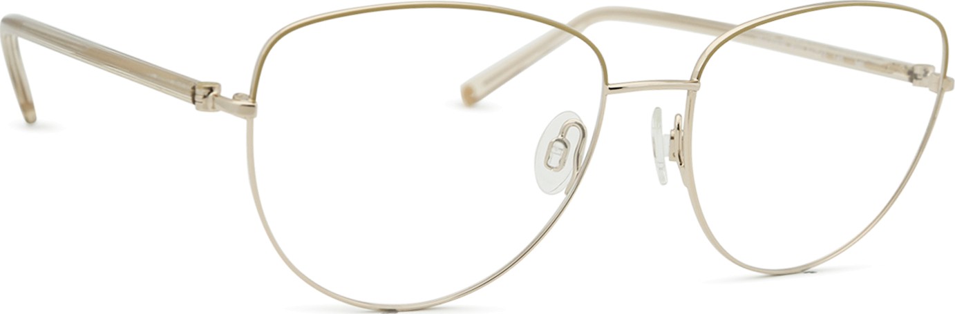 - A cor dourada da armação combina perfeitamente com um tom de pele escuro e um cabelo castanho escuro.