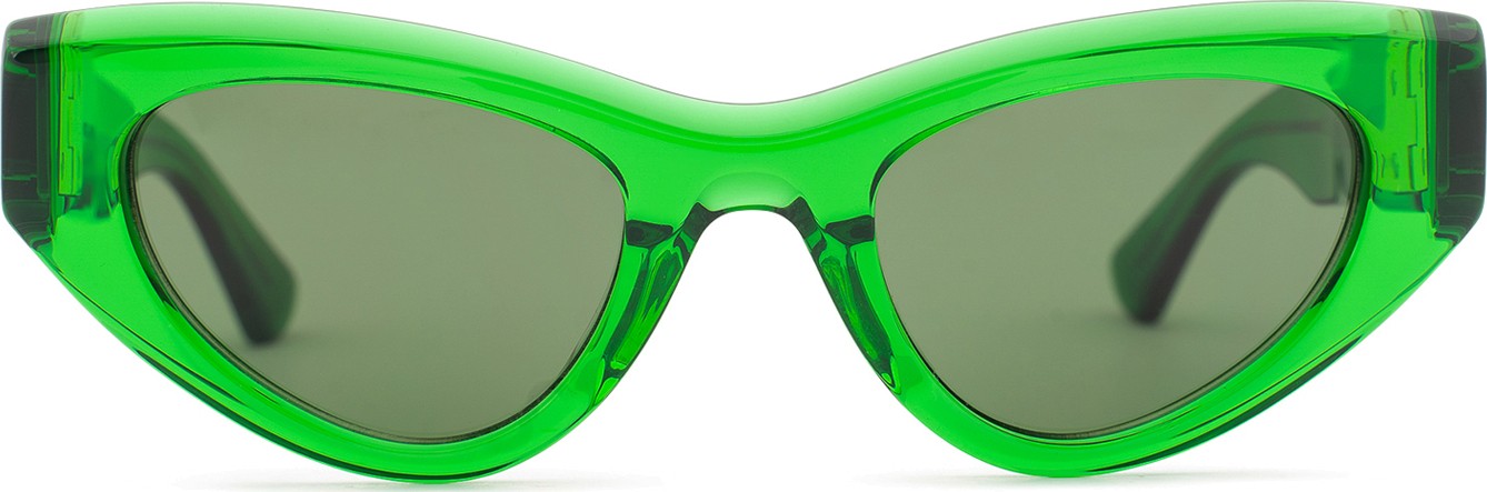 - A cor verde da armação combina perfeitamente com um tom de pele claro e um cabelo castanho escuro, preto ou ruivo.