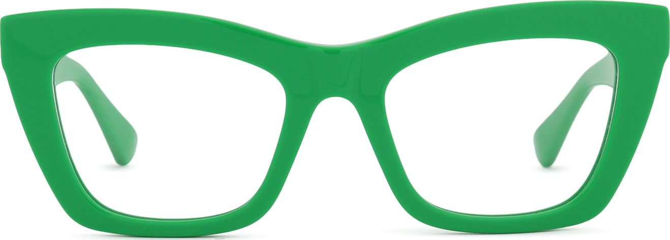 - A cor verde da armação combina perfeitamente com um tom de pele claro e um cabelo castanho escuro, preto ou ruivo.