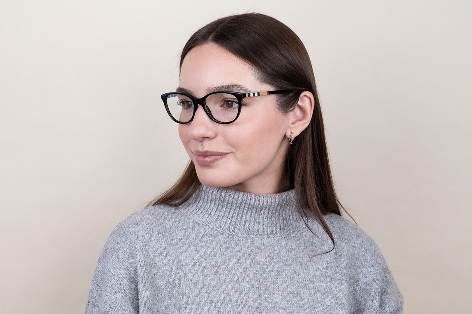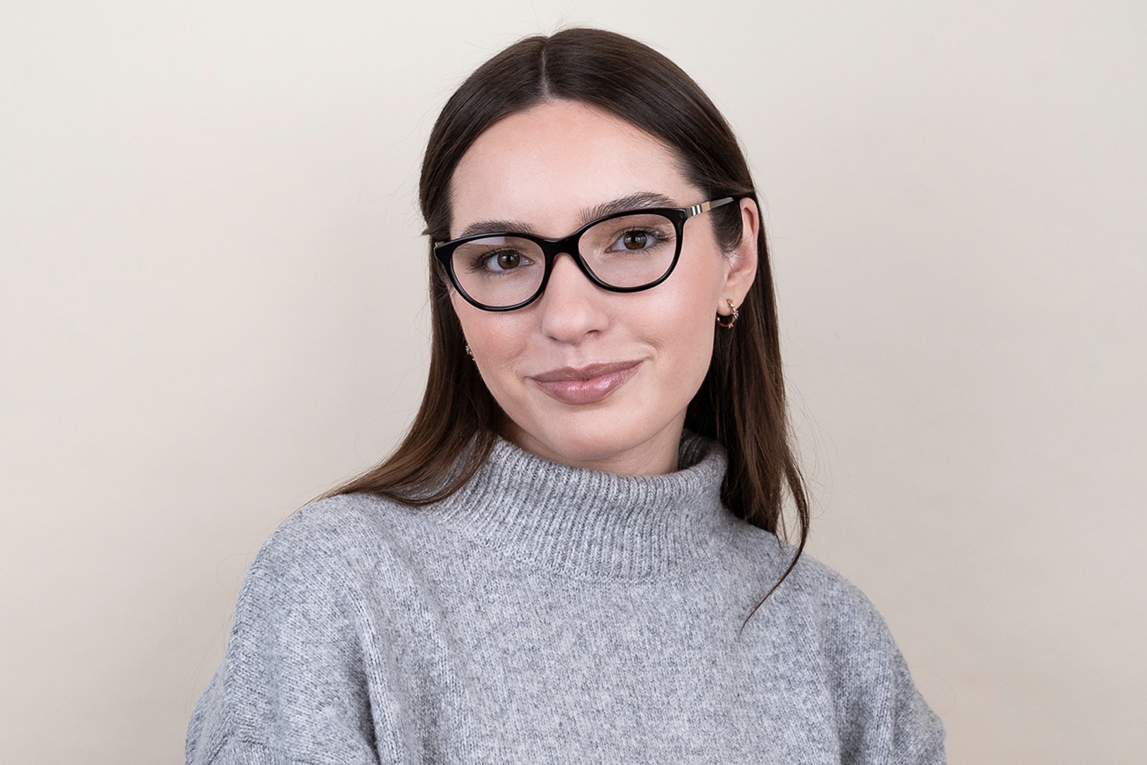 - A cor preta da armação combina perfeitamente com um tom de pele claro e um cabelo loiro claro, castanho claro ou preto.
