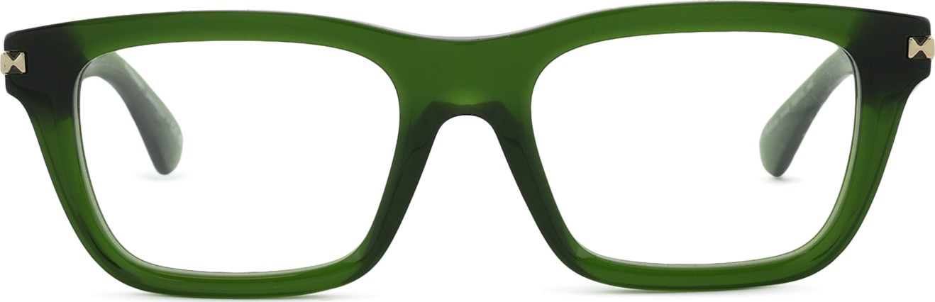 - A cor verde da armação combina perfeitamente com um tom de pele claro e um cabelo castanho escuro, preto ou ruivo.