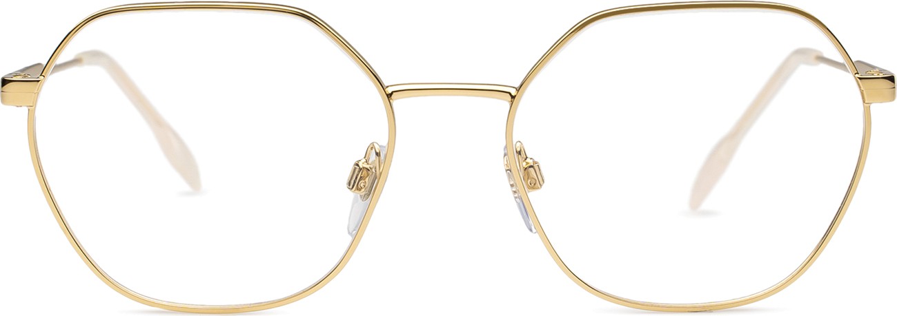 - A cor dourada da armação combina perfeitamente com um tom de pele escuro e um cabelo castanho escuro.