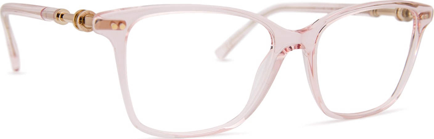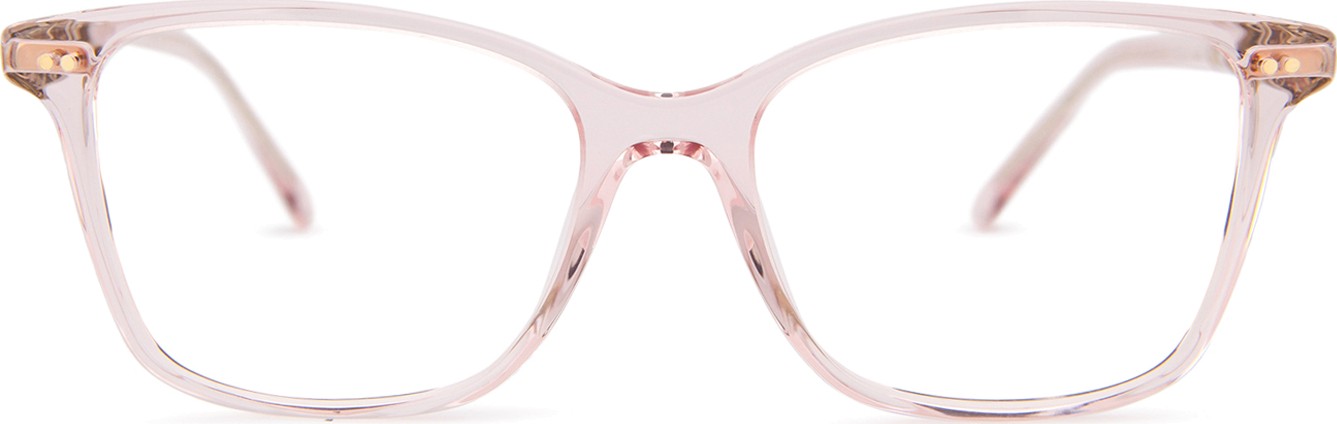 - A cor rosa da armação combina perfeitamente com um tom de pele claro e um cabelo castanho ou loiro claro.