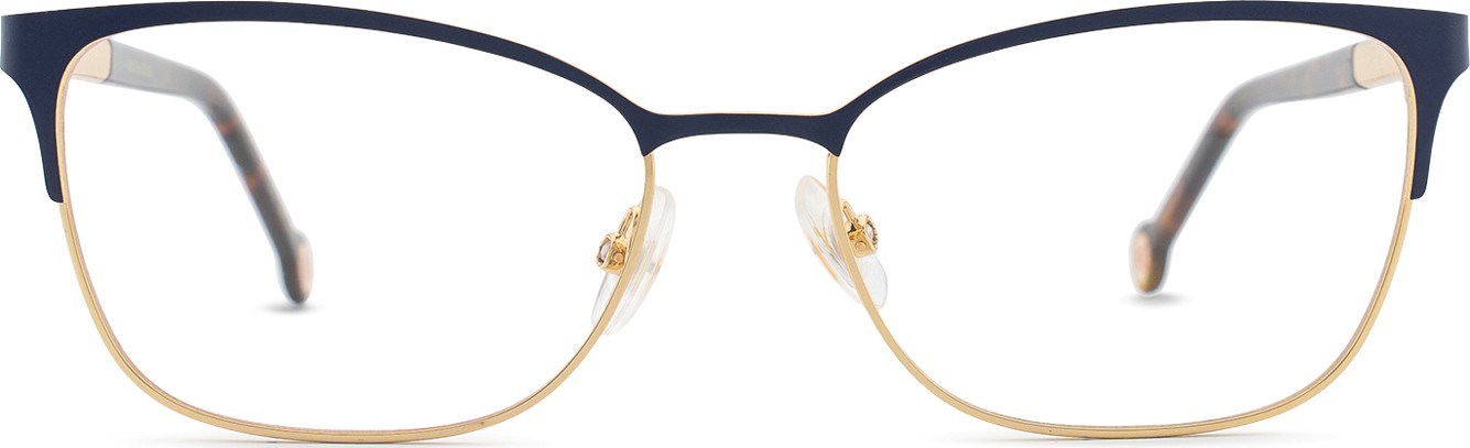 - A cor azul da armação combina perfeitamente com um tom de pele claro e um cabelo castanho claro, preto ou loiro claro.