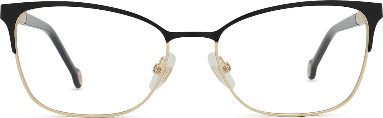 - A cor preta da armação combina perfeitamente com um tom de pele claro e um cabelo loiro claro, castanho claro ou preto.
