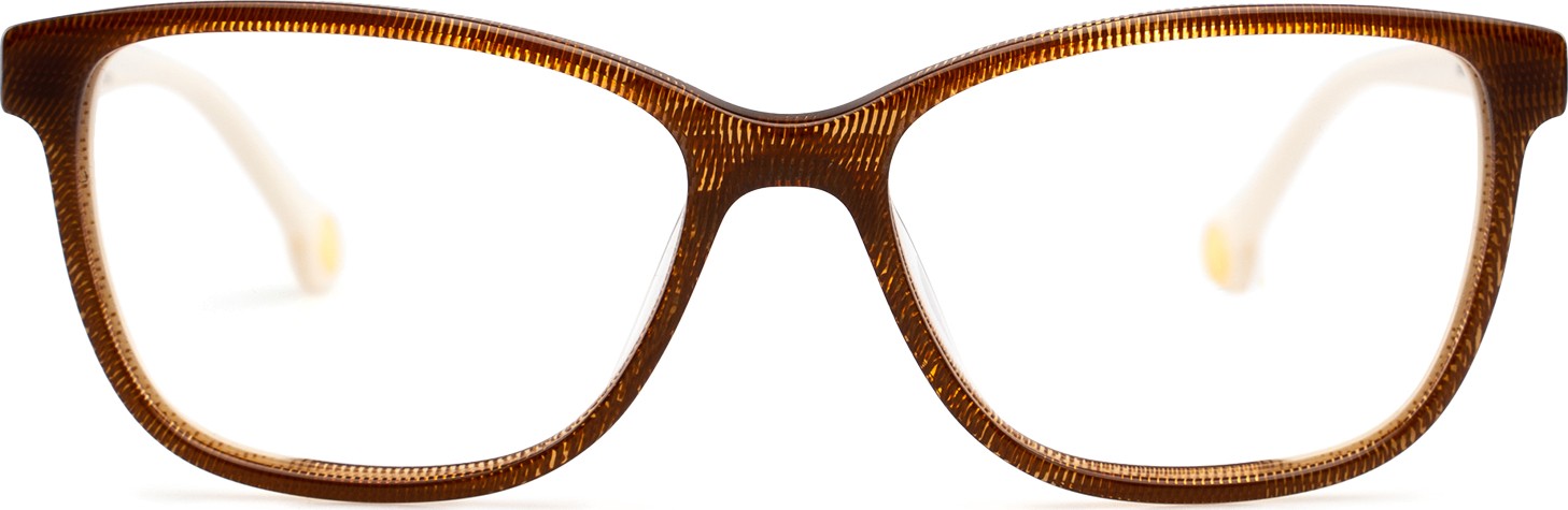 - A cor castanha da armação combina perfeitamente com um tom de pele escuro e um cabelo castanho claro, preto ou loiro escuro.