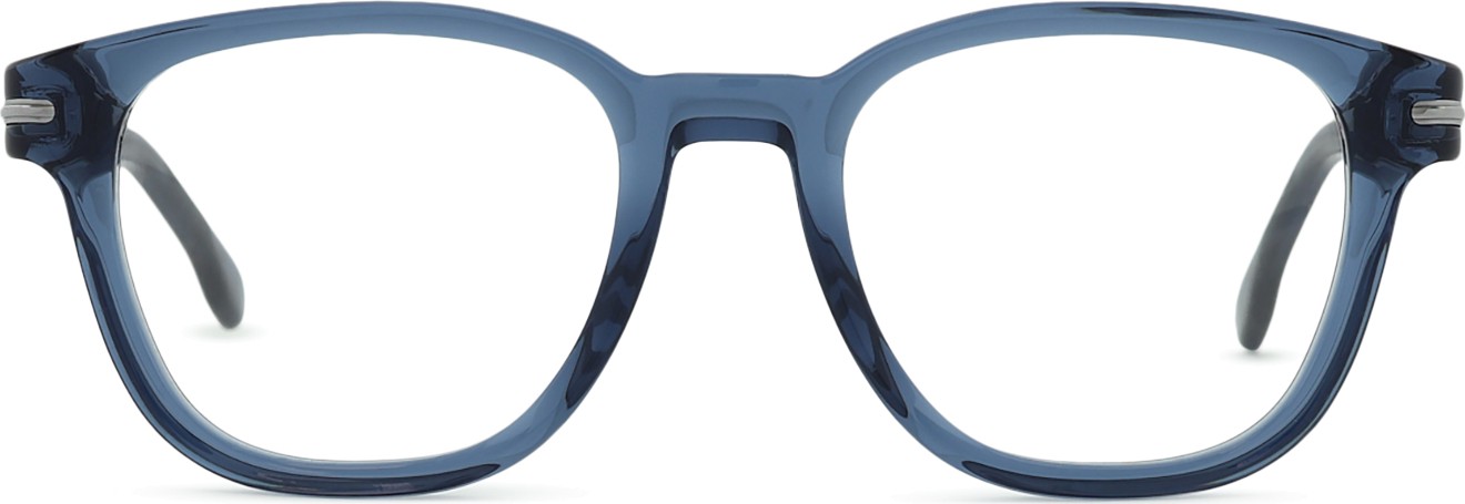 A cor azul da armação combina perfeitamente com um tom de pele claro e um cabelo castanho claro, preto ou loiro claro.