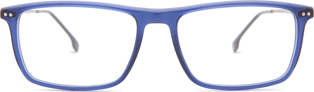 - A cor azul da armação combina perfeitamente com um tom de pele claro e um cabelo castanho claro, preto ou loiro claro.