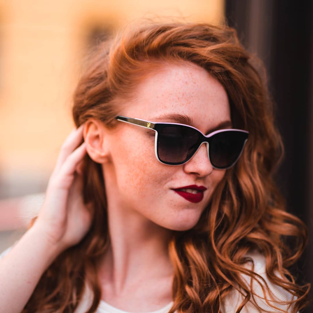 A cor preta da armação combina perfeitamente com um tom de pele claro e um cabelo loiro claro, castanho claro ou preto.