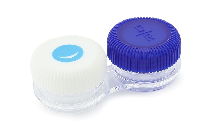 Estojo com tampas de rosca para guardar lentes de contacto moles.