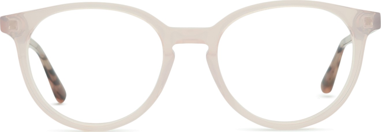 A cor rosa da armação combina perfeitamente com um tom de pele claro e um cabelo castanho ou loiro claro.