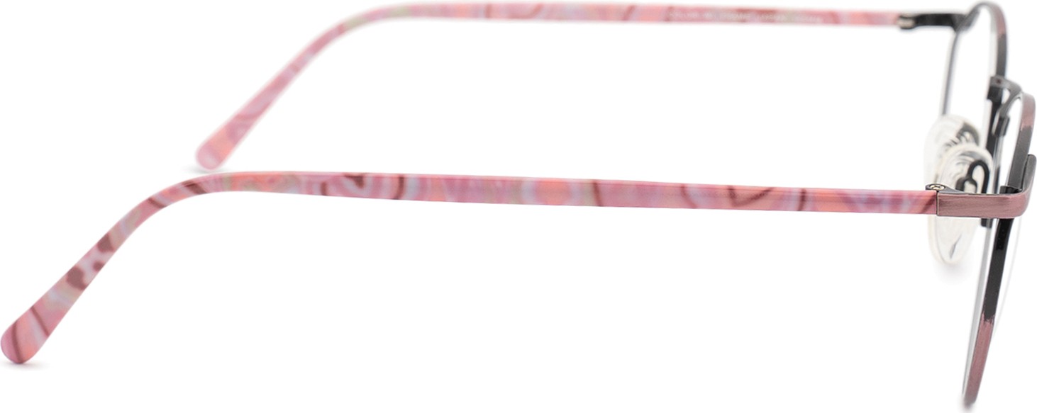 - A cor rosa da armação combina perfeitamente com um tom de pele claro e um cabelo castanho ou loiro claro.