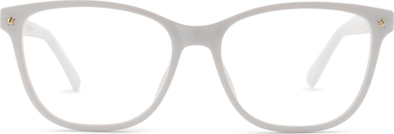 - A cor branca da armação combina perfeitamente com um tom de pele claro e um cabelo preto, castanho claro e loiro claro.
