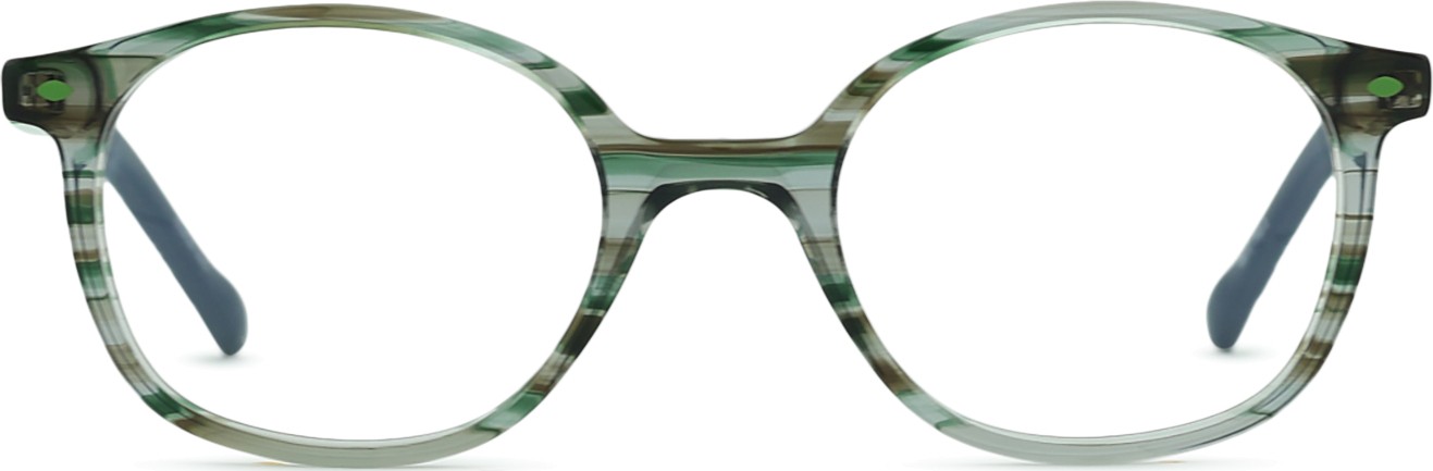 - A cor verde da armação combina perfeitamente com um tom de pele claro e um cabelo castanho escuro, preto ou ruivo.
