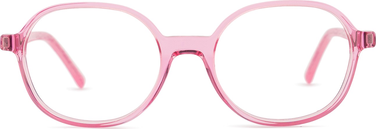 A cor rosa da armação combina perfeitamente com um tom de pele claro e um cabelo castanho ou loiro claro.