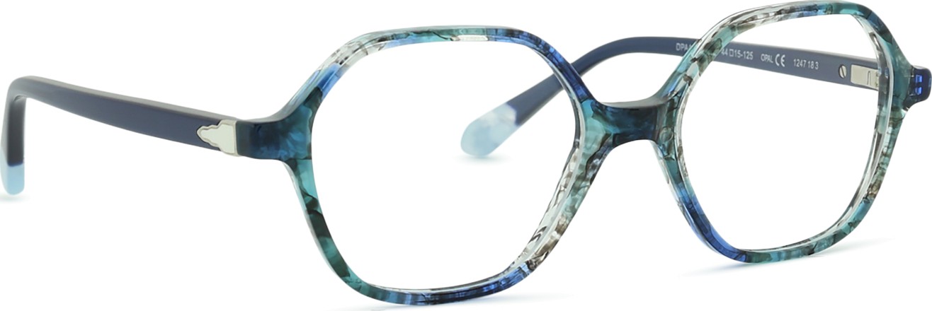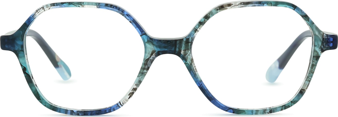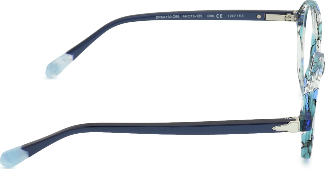 - A cor azul da armação combina perfeitamente com um tom de pele claro e um cabelo castanho claro, preto ou loiro claro.