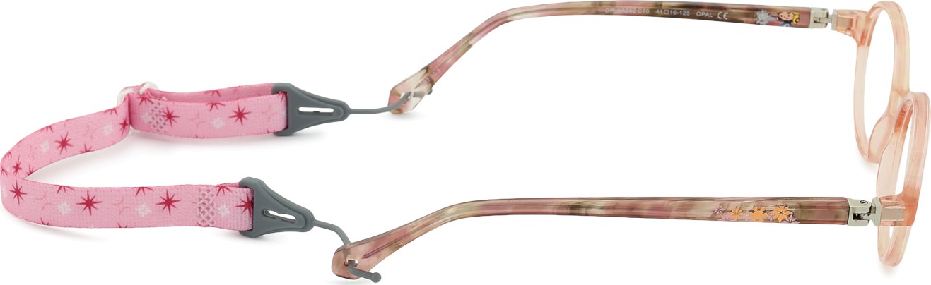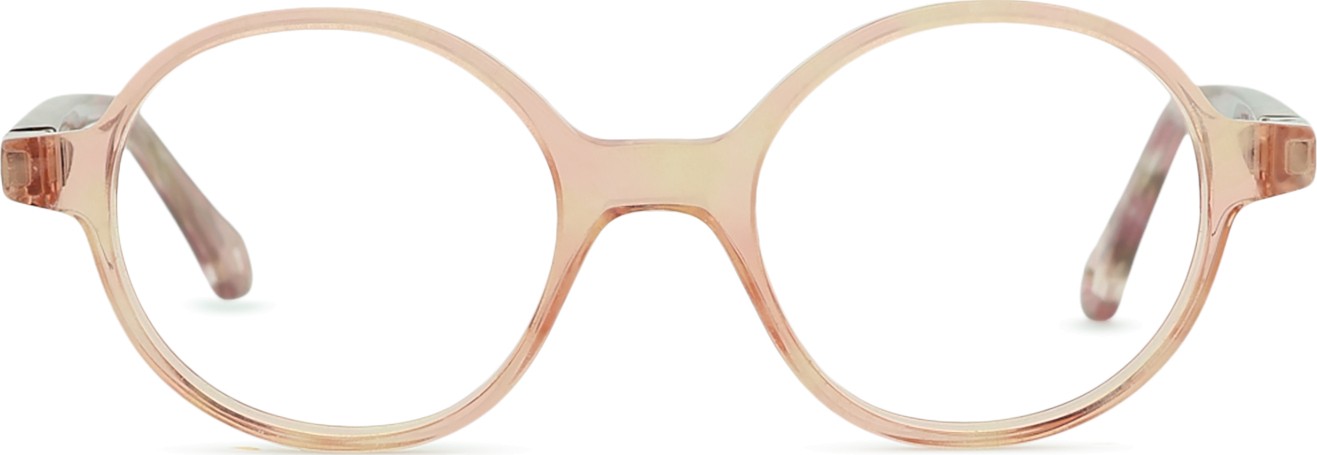 - A cor rosa da armação combina perfeitamente com um tom de pele claro e um cabelo castanho ou loiro claro.