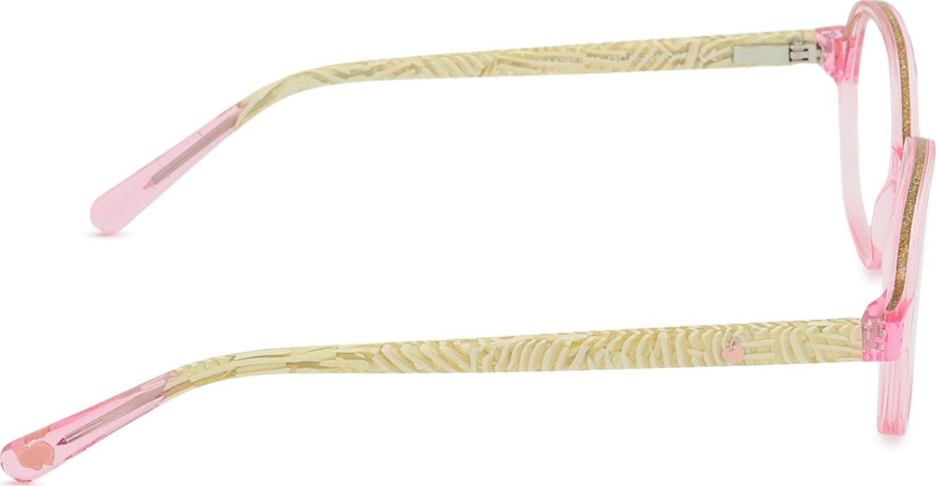 • A cor rosa da armação combina perfeitamente com um tom de pele claro e um cabelo castanho ou loiro claro.