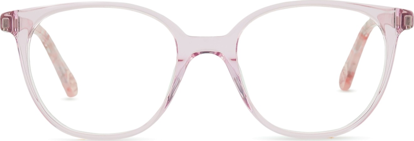 A cor rosa da armação combina perfeitamente com um tom de pele claro e um cabelo castanho ou loiro claro.