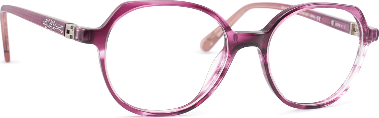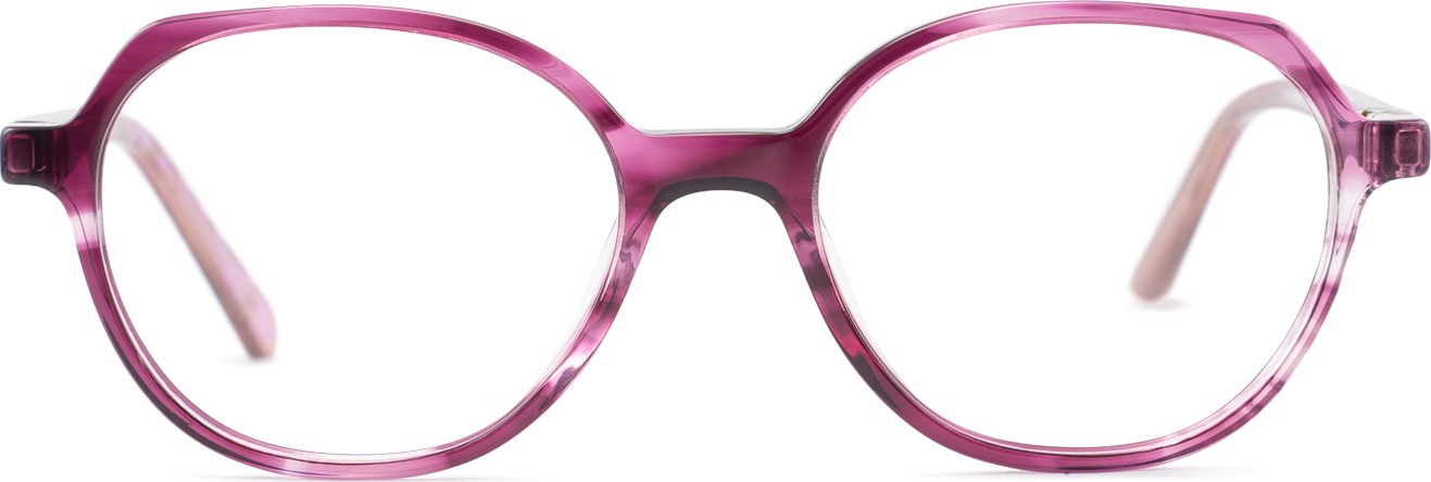 - A cor púrpura da armação combina perfeitamente com um tom de pele claro e um cabelo preto, cinzento, branco ou loiro claro.