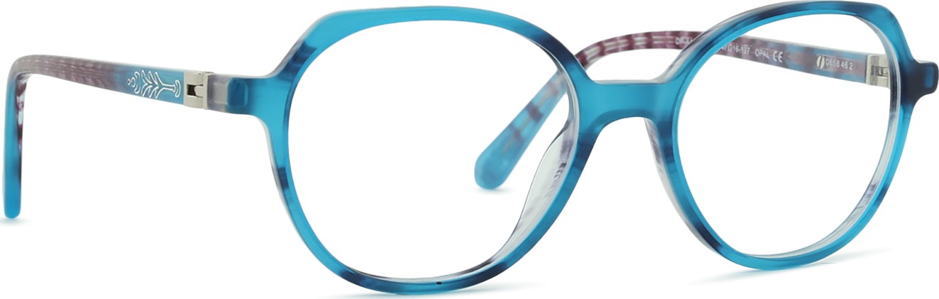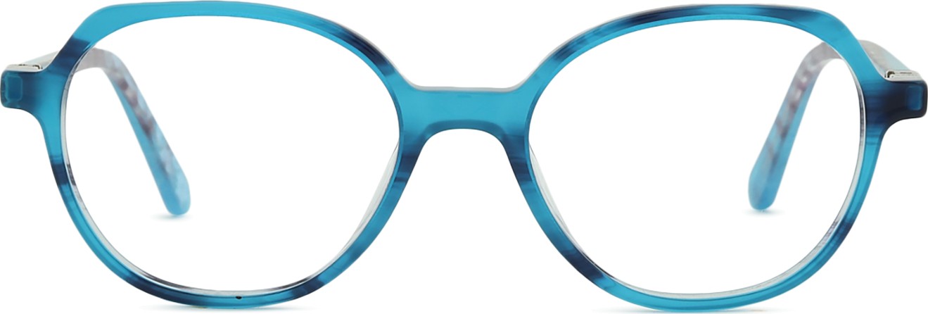 A cor azul da armação combina perfeitamente com um tom de pele claro e um cabelo castanho claro, preto ou loiro claro.