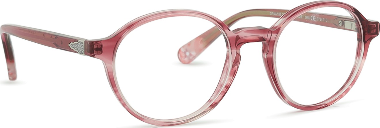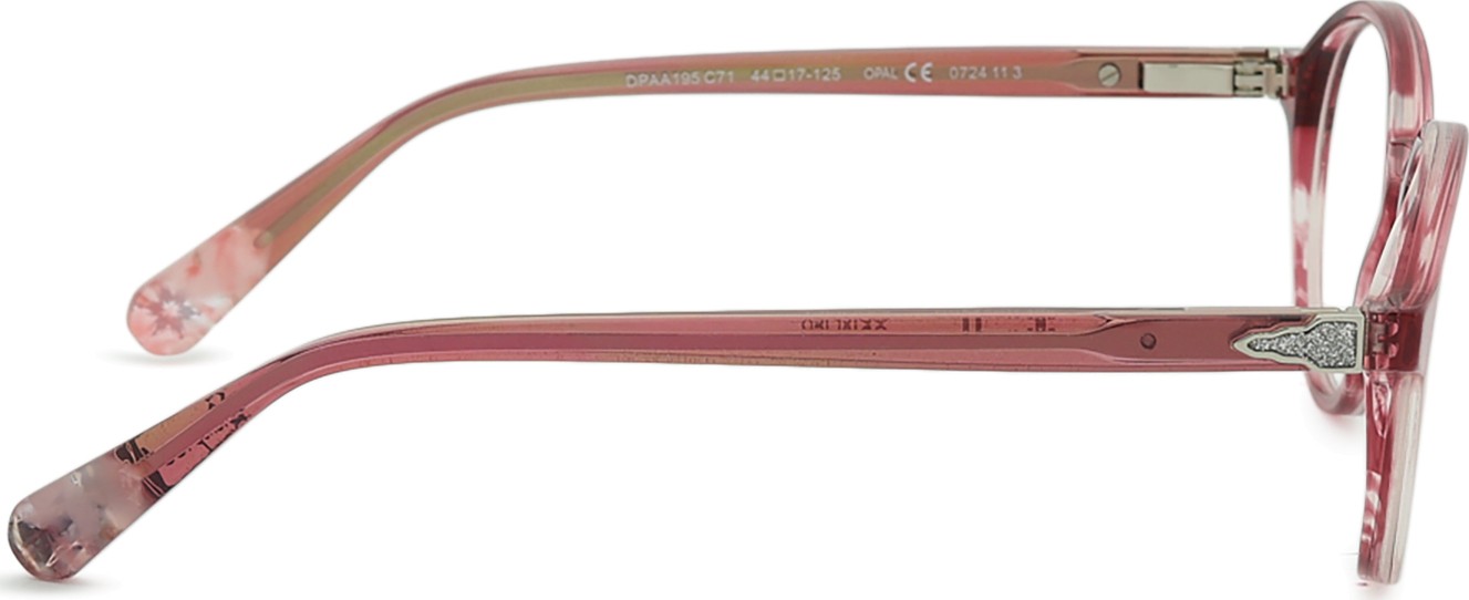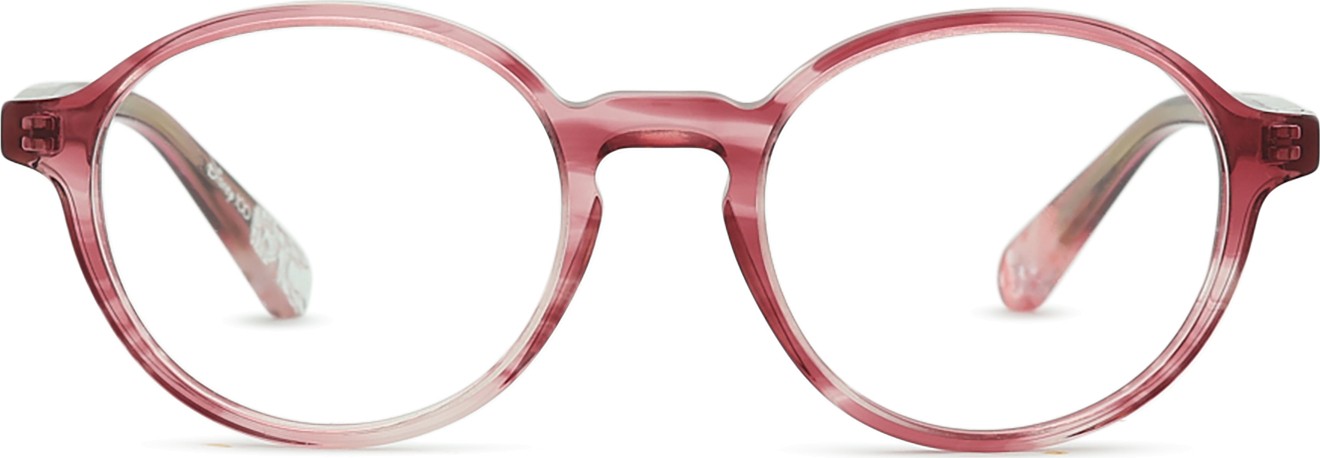 A cor rosa da armação combina perfeitamente com um tom de pele claro e um cabelo castanho ou loiro claro.