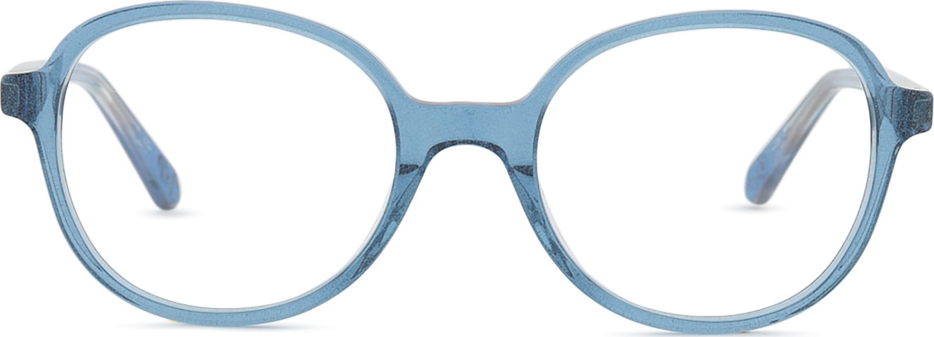 A cor azul da armação combina perfeitamente com um tom de pele claro e um cabelo castanho claro, preto ou loiro claro.