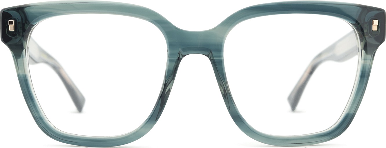 - A cor verde da armação combina perfeitamente com um tom de pele claro e um cabelo castanho escuro, preto ou ruivo.