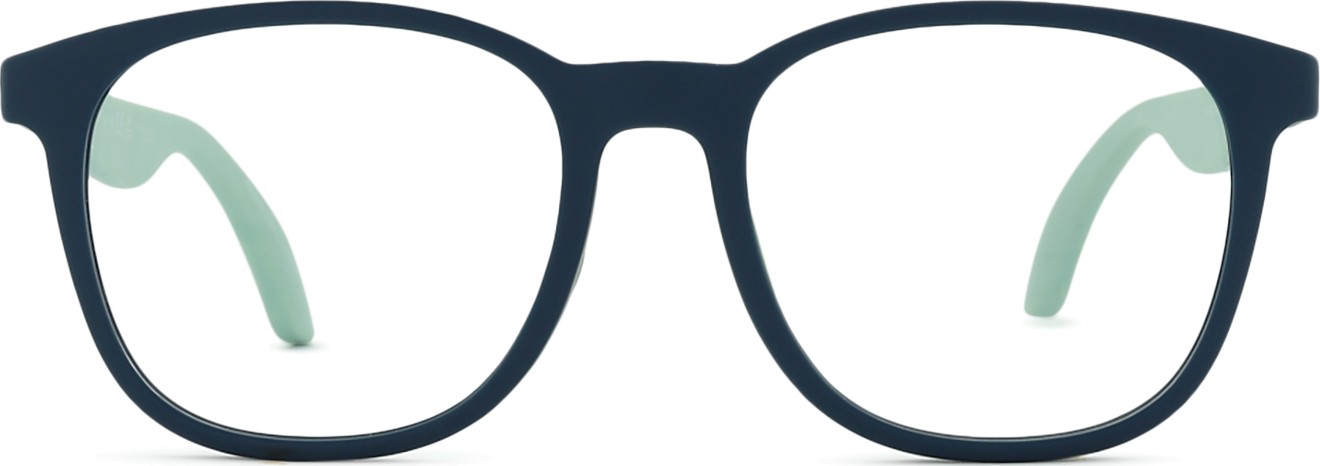 A cor azul da armação combina perfeitamente com um tom de pele claro e um cabelo castanho claro, preto ou loiro claro.