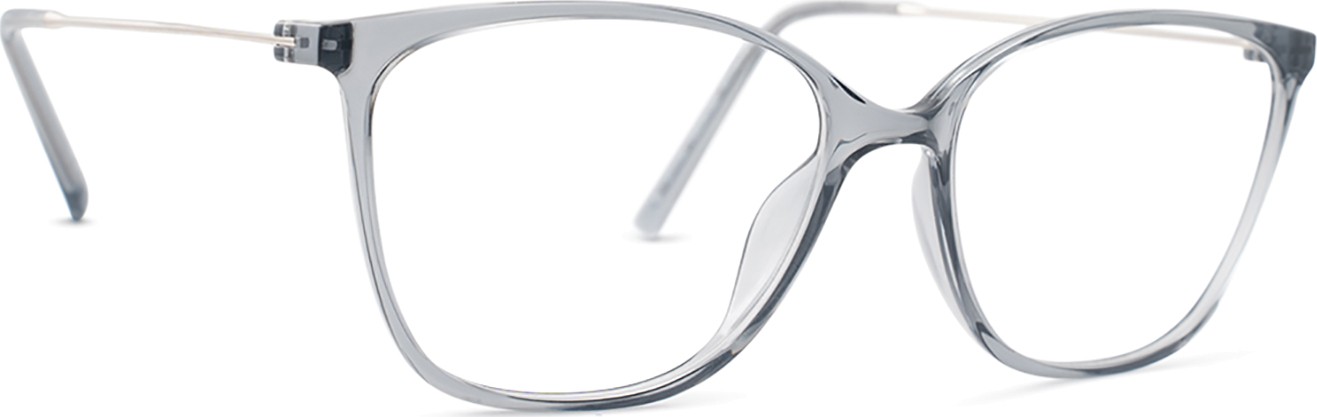 - A cor cinzenta da armação combina perfeitamente com um tom de pele claro e um cabelo vermelho, cinzento, branco ou loiro escuro.