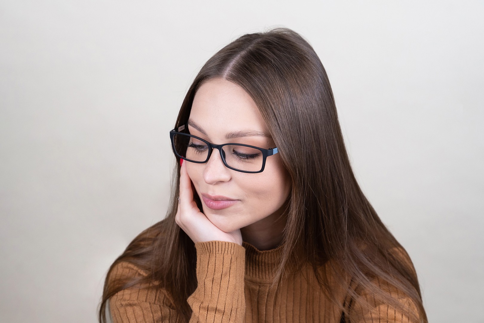 - A cor preta da armação combina perfeitamente com um tom de pele claro e um cabelo loiro claro, castanho claro ou preto.
