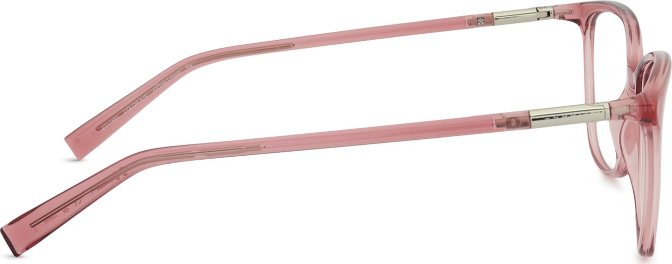 - A cor rosa da armação combina perfeitamente com um tom de pele claro e um cabelo castanho ou loiro claro.