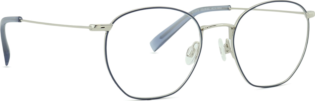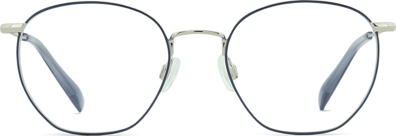 A cor azul da armação combina perfeitamente com um tom de pele claro e um cabelo castanho claro, preto ou loiro claro.